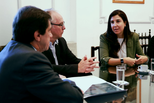 En un encuentro en el Salón Blanco, el gobernador Carlos Sadir y el ministro de Infraestructura, Servicios Públicos, Tierra y Vivienda, Carlos Stanic, recibieron a la decana de Ciencias Exactas de la UNC, Magalí Carro Pérez, para coordinar la implementación del Proyecto Matteo, y formalizar, de esta manera, esta alianza de ciencia ciudadana que transforma a los alumnos de nivel inicial y primario en monitores ambientales.