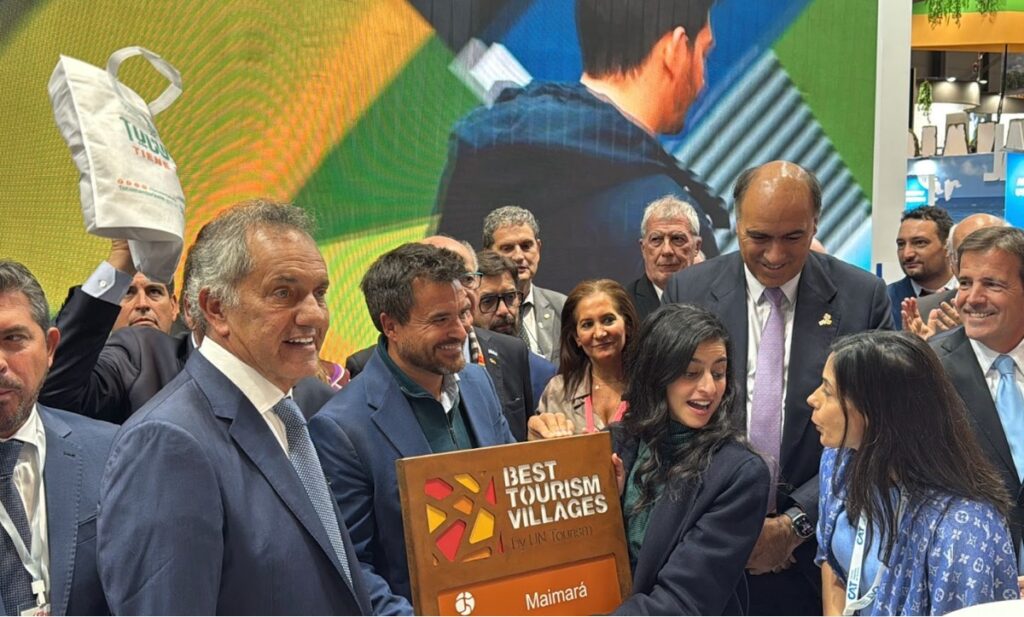 El marco de la feria, Shaikha Al Nowais, presidenta de ONU Turismo, entregó un reconocimiento al ministro Federico Posadas por Maimará (Jujuy), por ser elegida como uno de los mejores pueblos del mundo (Best Tourism Villages), destacándose entre más de 270 candidatos, reafirmando el valor del turismo rural, comunitario y sostenible que impulsa la provincia.